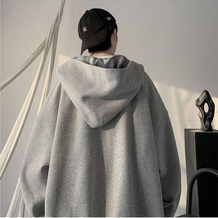 Fashion Fake Two Piece Solid Color Sweatshirt Men's Hooded Jacket