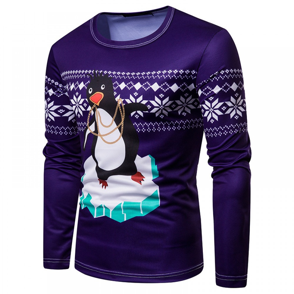 New 3D Personality Printing Fashion Men's Christmas Penguin Long-Sleeved T-Shirt