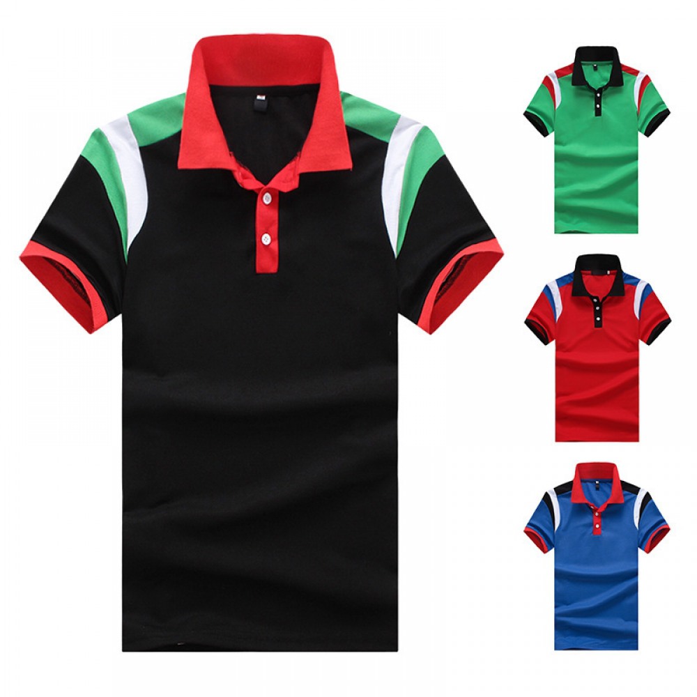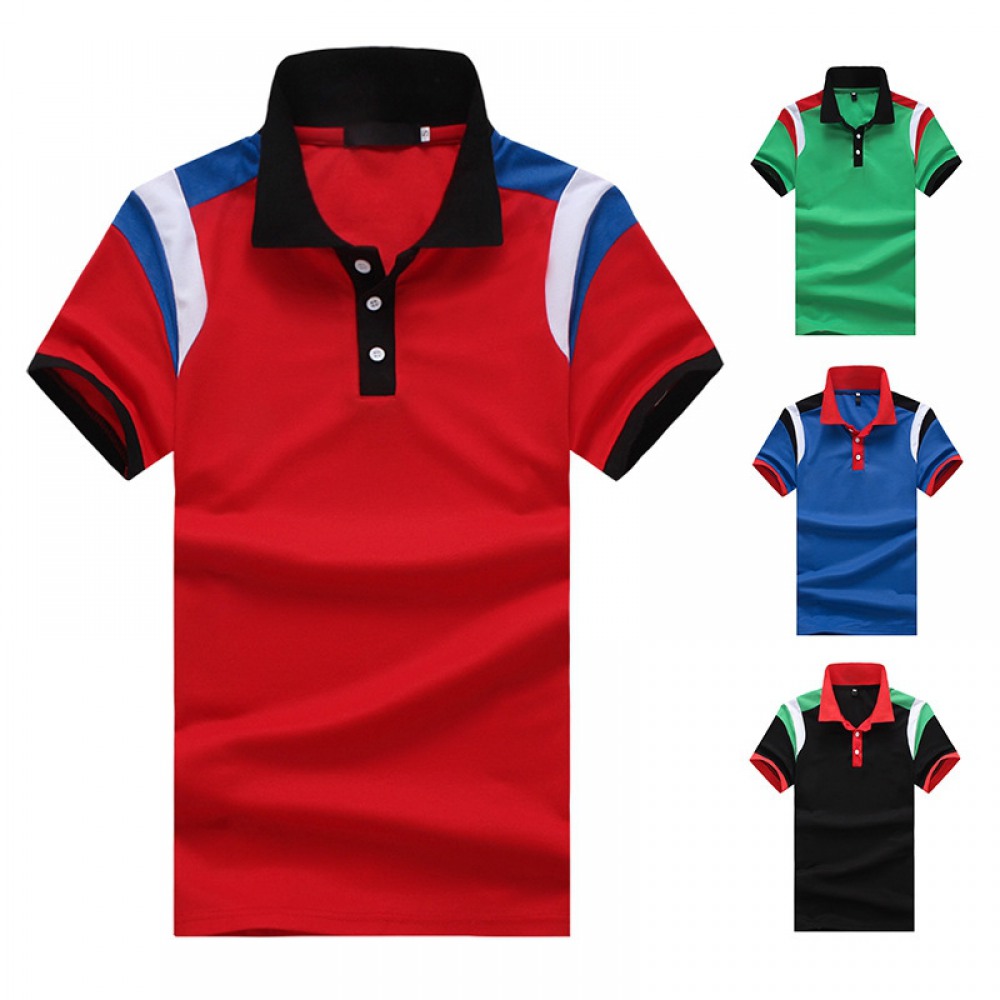 New Style Flat Men's Shoulder Color Matching Short Sleeve Polo