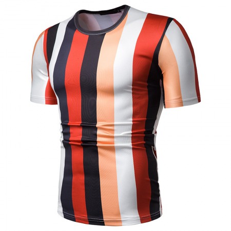 New Summer Men's Short-Sleeved T-Shirt Men's Contrast Striped Slim Casual T-Shirt