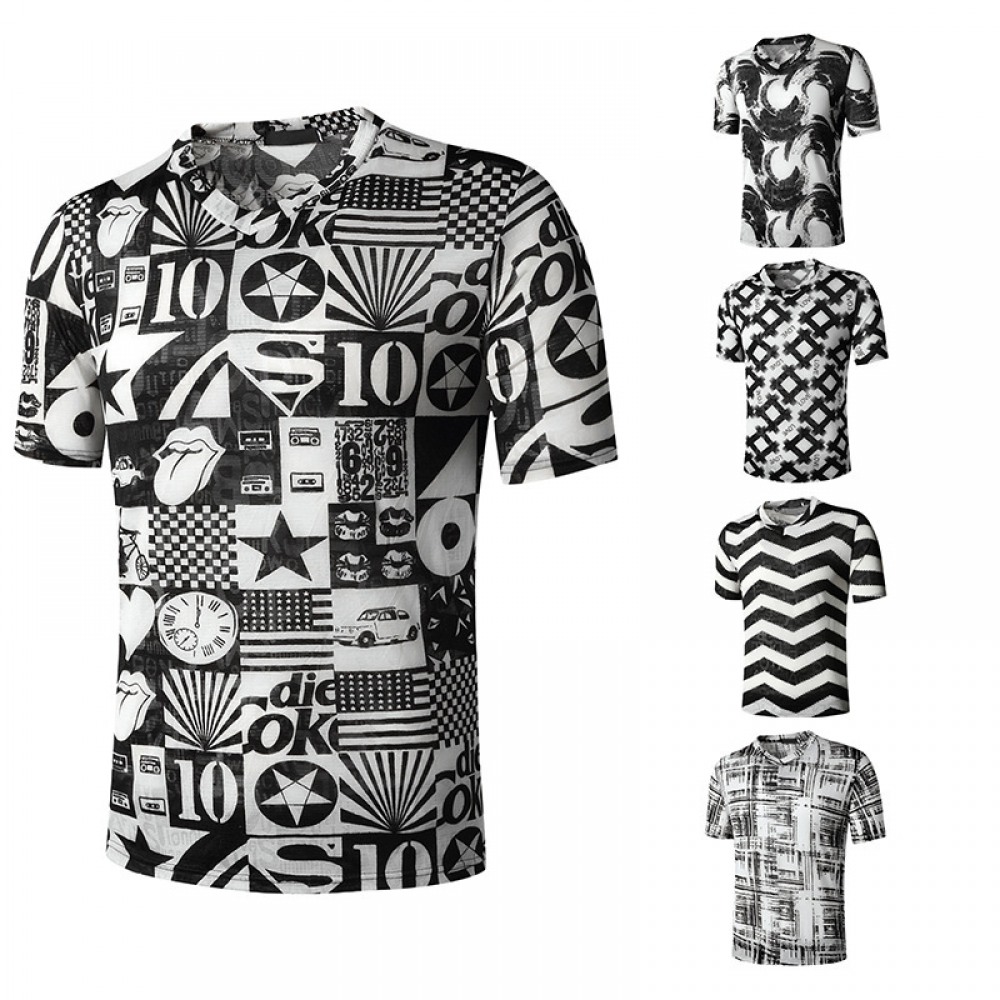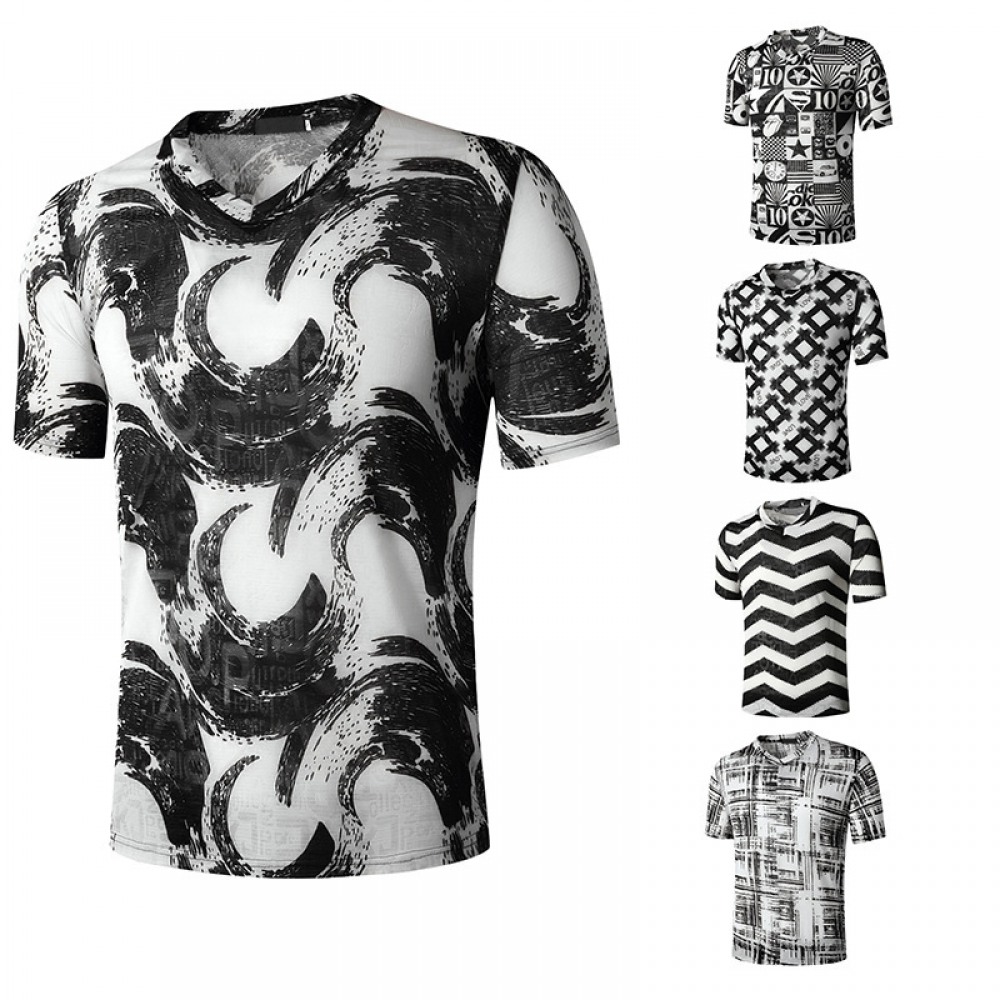 Summer Men's English Jacquard Fashion V-Neck Short-Sleeved T-Shirt
